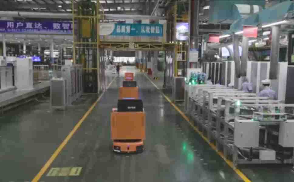 为车载冰箱物流配送打造的智能解决方案,,包含产中物流通过潜伏举升AMR搬运至线边,,,产后成品物流智能仓储,,流程包含产中物流智能齐套入库,,线边安灯叫料AMR智能配送至线边,,成品入库、、出库,,,,通过无人堆高车机器人,,,,智能仓储管理替代人工作业管理,,,实现更高存储、、更高效率、、更具柔性化的解决方案。。。。