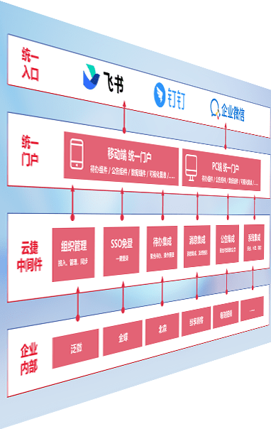 对协作平台提供支持服务,,,支持企业应用与协作平台对接,,,包含组织同步、、消息集成、、待办集成等。。支持目前主流的协作平台:钉钉、、、、企微和飞书。。。